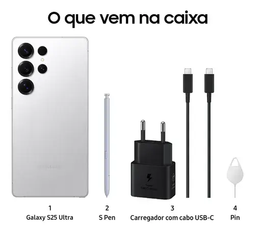 o Galaxy S25 Ultra da Samsung em 2025 com foco em desempenho, câmeras avançadas e recursos de IA. Tela grande e S Pen para produtividade, mantendo construção premium.